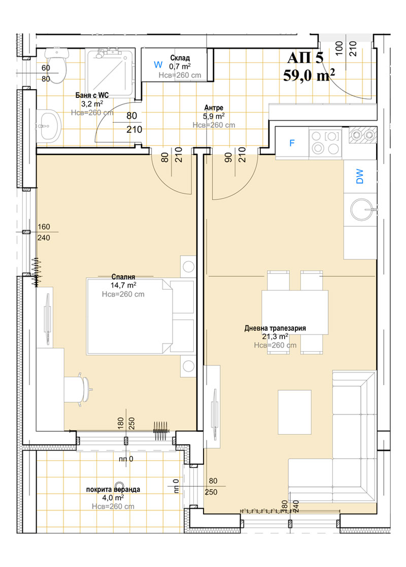 | Ап. 5 | 1 | 68,22 кв.м | 1 | 1 | 109,995 € | Свободен |